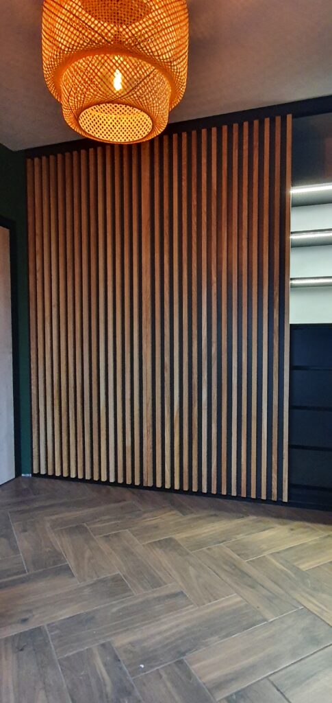 Szafa na Wymiar z Frontami z Lamelkami Dębowymi - PNV Meble na Wymiar Gorzów Wielkopolski Szafa na wymiar z frontami z lamelkami dębowymi to eleganckie i funkcjonalne rozwiązanie, które doskonale wpisuje się w nowoczesne wnętrza. Dzięki zastosowaniu lameli dębowych, szafa zyskuje wyjątkowy charakter i naturalny wygląd, który dodaje ciepła każdemu pomieszczeniu. Fronty z Lameli Dębowych Fronty z lameli dębowych są nie tylko estetyczne, ale również bardzo trwałe. Drewno dębowe jest znane ze swojej wytrzymałości i odporności na uszkodzenia, co sprawia, że fronty te będą służyć przez wiele lat. Oto kilka zalet frontów z lameli dębowych: Naturalny wygląd: Lamele dębowe nadają szafie unikalny, naturalny wygląd, który wprowadza do wnętrza ciepło i elegancję. Trwałość: Drewno dębowe jest bardzo wytrzymałe i estetyczne.