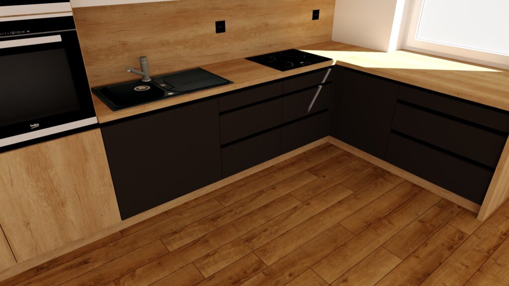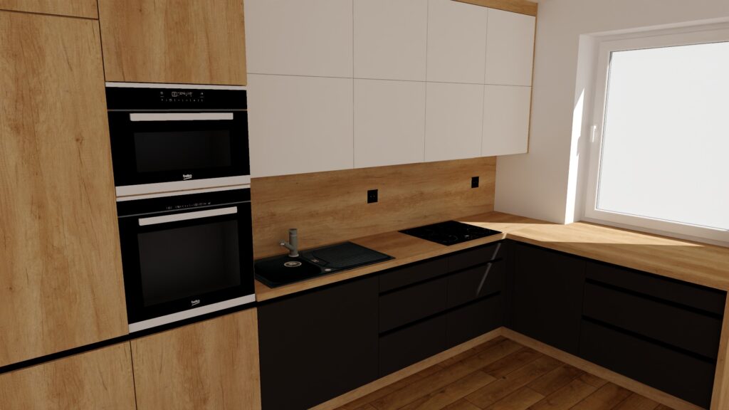 Dlaczego Warto? Inwestycja w kuchnię na wymiar z czarnymi frontami i płytą drewnopodobną to doskonały wybór dla osób ceniących sobie nowoczesny design i trwałość. Tego typu kuchnia nie tylko pięknie się prezentuje, ale również jest łatwa w utrzymaniu i odporna na codzienne użytkowanie.
